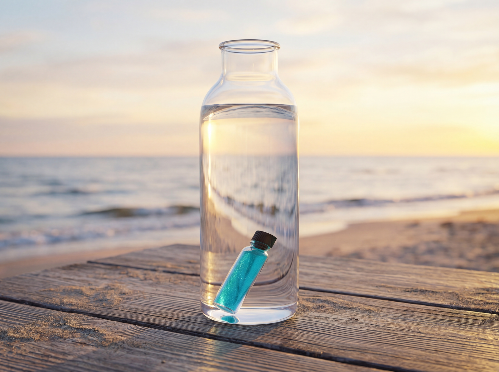 - Umieść szczelnie zamkniętą fiolkę w butelce lub dzbanku z wodą.