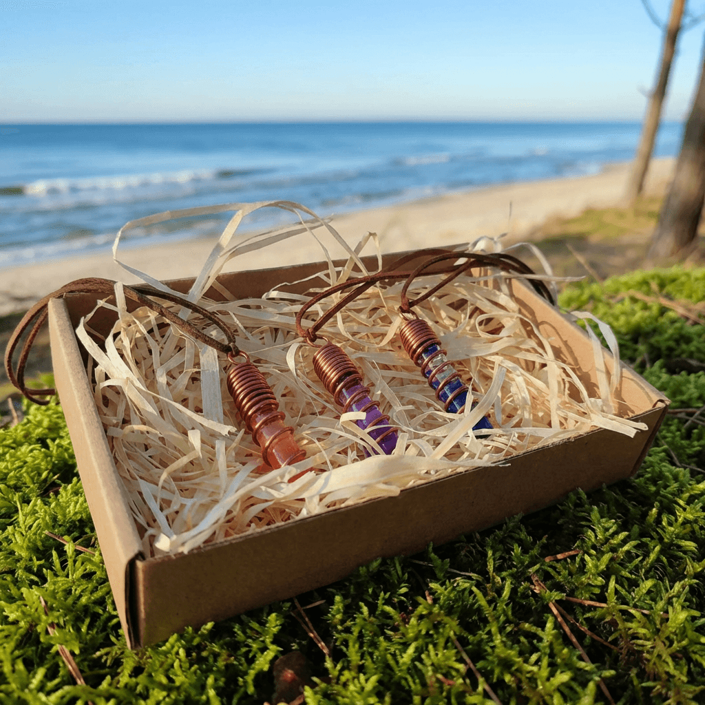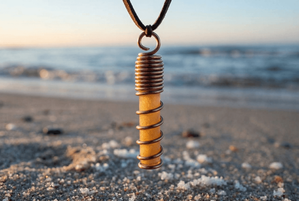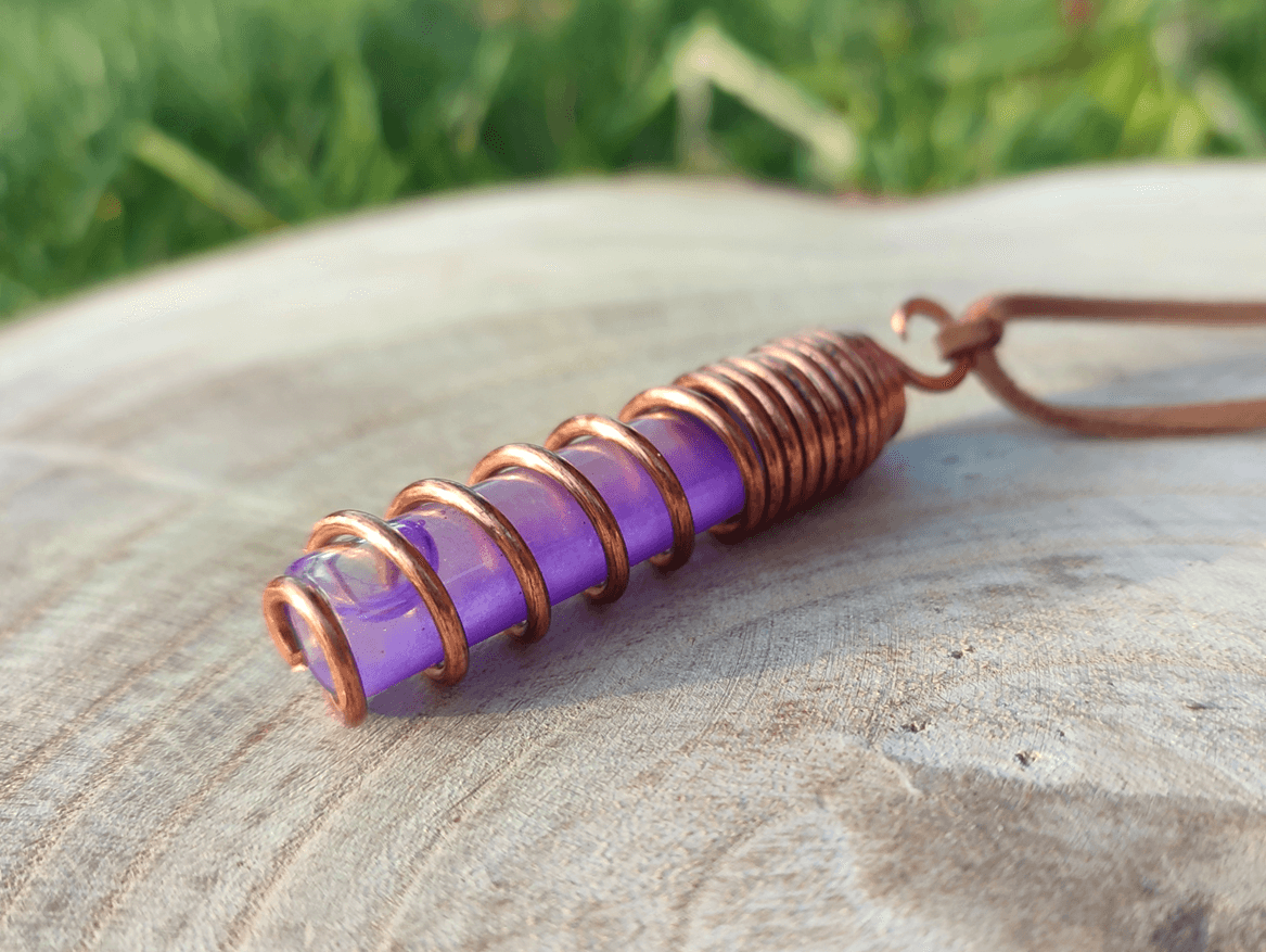 Miedź, nawinięta w precyzyjną spiralę, działa jak antena i wzmacniacz. Porządkuje przepływ, kieruje pole do centrum i stabilizuje jego działanie. Spiralna geometria wspiera naturalny przepływ energii wzdłuż osi ciała.