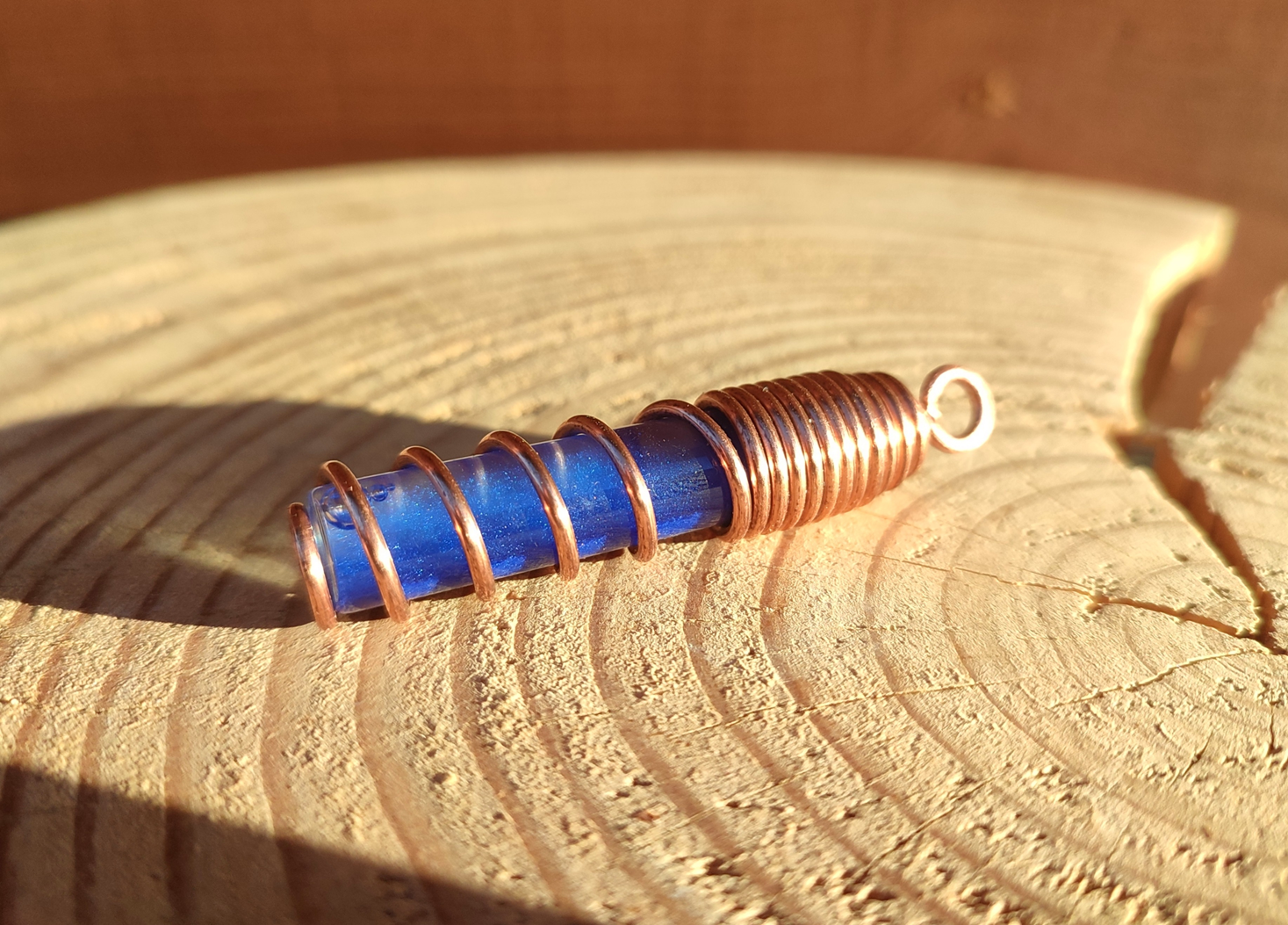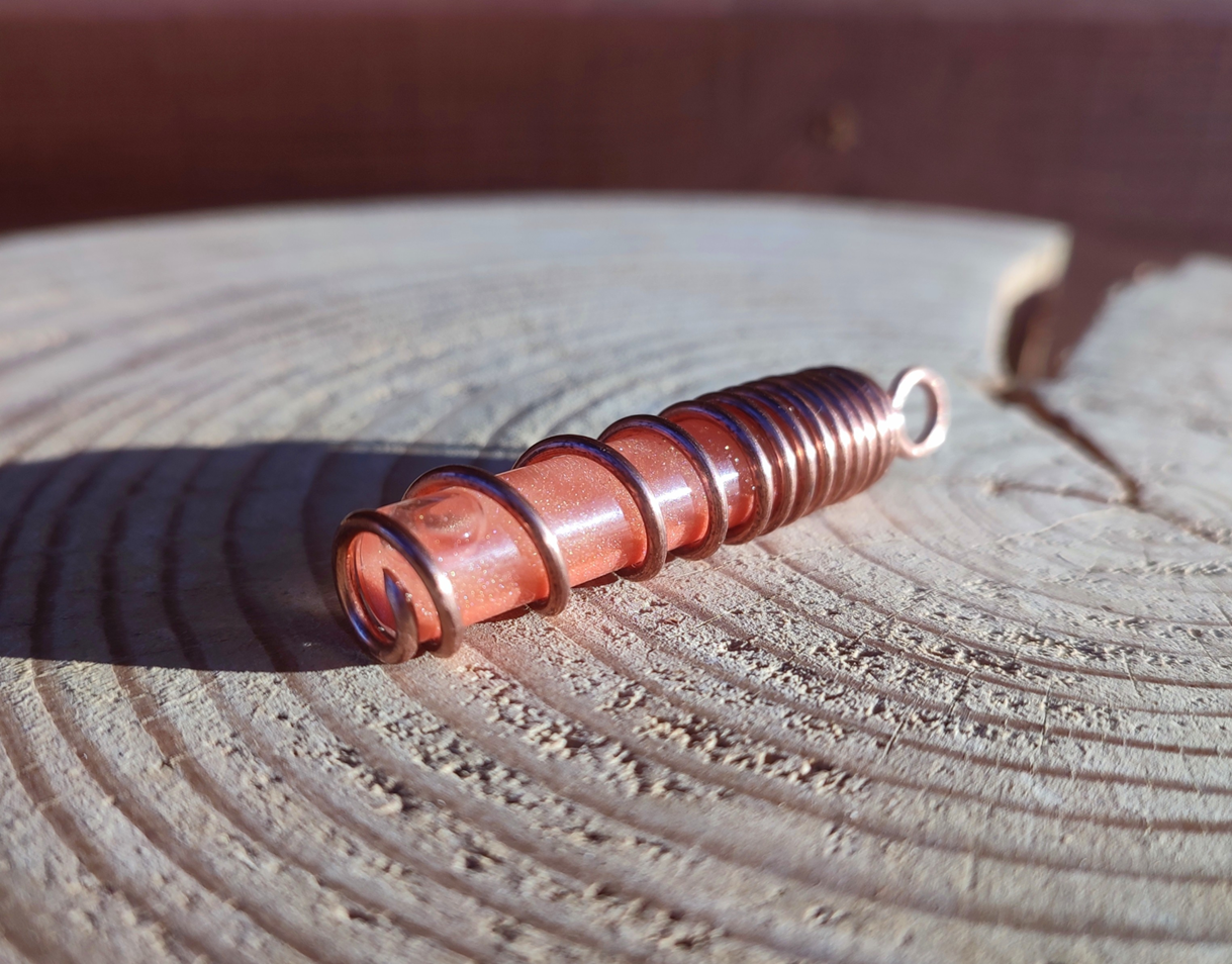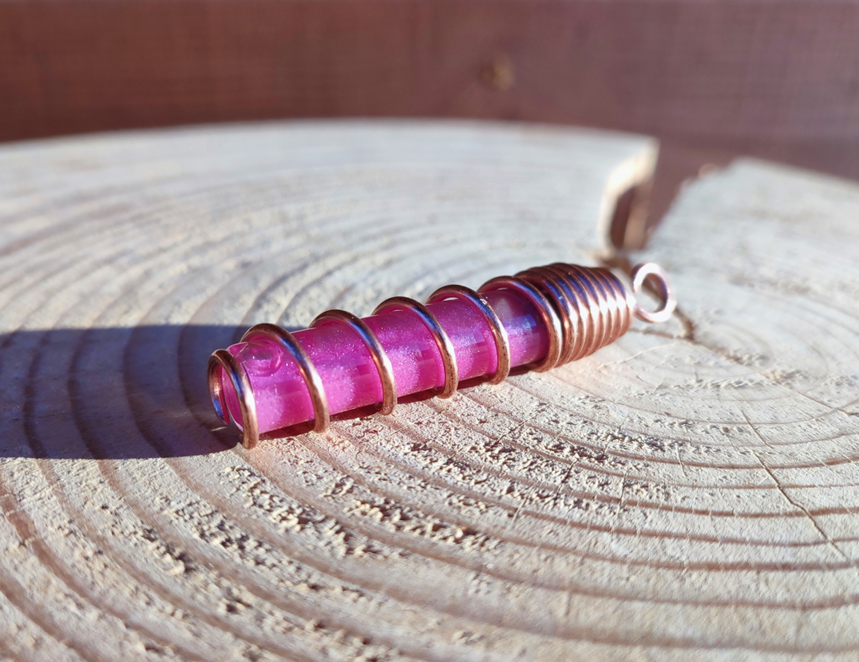 Miedź, nawinięta w precyzyjną spiralę, działa jak antena i wzmacniacz. Porządkuje przepływ, kieruje pole do centrum i stabilizuje jego działanie. Spiralna geometria wspiera naturalny przepływ energii wzdłuż osi ciała.